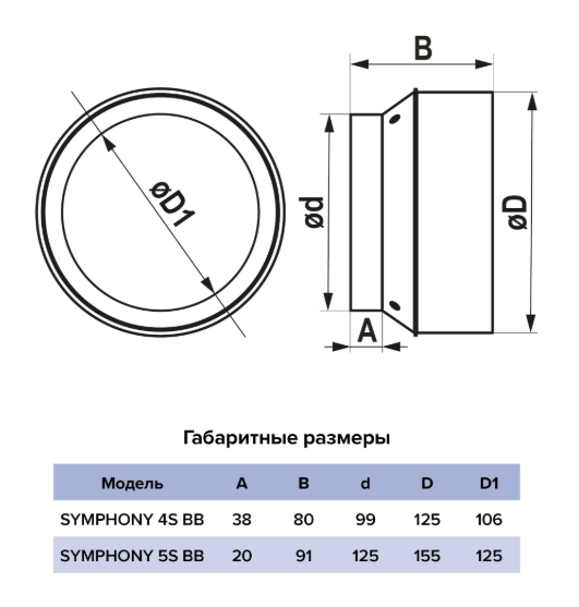 SYMPHONY 5S BB Вентилятор встраиваемый SYMPHONY D125 осевой сетка двигатель BB ERA