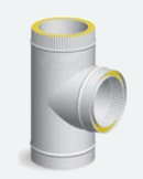 Тройники сэндвич серия "ЭКОНОМ" 130/200 (Нерж. - оцинк.) Наружный контур трубы выполнен из оцинкованной стали толщиной 0,5 мм, Внутренний контур: 0,5 мм, Сталь: нерж. AISI 304